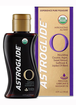 99% ORGANIC INGREDIENTS, 100% PURE PLEASURE.Astroglide O Personal Lubricant and Massage Oil is USDA certified organic, formulated with ultra-hydrating, plant-based oils for a sensually luxurious feel. Infused with natural ingredients like Ylang Ylang and Coconut Oil, Astroglide O invites you explore pure pleasure, in a natural way. Long-lasting, sensual & slick, not latex safe.