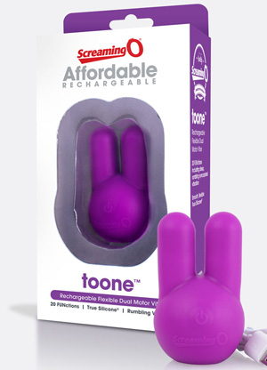 Double your pleasure with the Affordable Rechargeable™ toone™, a uniquely shaped dual-motor vibrator that provides surrounding sensation and penetrating vibration. Comfortable to hold and easy to use, the toone™ features two firm yet flexible “ears” which extend from the top of the toy, each containing its own deep, rumbling motor. With 20 FUNctions of Vooom® vibration, you can choose to envelope your curves with constant vibration, or to let the rhythmic patterns “dance” back and forth between the motors. Constructed with certified body-safe True Silicone® and powered by an innovative Lithium Polymer battery that lasts for more than 60 minutes per charge, the toone™ comes with a 2-year limited warranty. With intensity that varies from a gently teasing tickle to a surge of stimulating power, the Affordable Rechargeable™ toone™ can heighten your erotic experience, whether you’re playing solo or you have two to tango.Copyright © 2026 Adnet Media. All Rights Reserved. XBIZ is a trademark of Adnet Media.