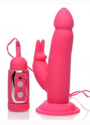 Enjoy internal and external pleasure with a twist! This gyrating rabbit vibrator is great for solo or use with a partner, featuring a suction cup base that mounts to any smooth, hard surface, and a wired controller that lights up for your convenience. Play with 2 speeds of vibration and 3 pulsating functions to find the setting that gets you off. The smooth, straight shaft has a defined head, mimicking the shape of a penis, and inserts easily. The rotation within you will brush against your G-spot for an orgasmic stimulation. A bunny-shaped clitoral stimulator will buzz against the sensitive exterior of your vulva, tickling you with its ears. This premium silicone vibe is non-porous, phthalate-free, and splashproof. Avoid use with silicone lubricants and clean with mild soap and warm water after use.Copyright © 2026 Adnet Media. All Rights Reserved. XBIZ is a trademark of Adnet Media.