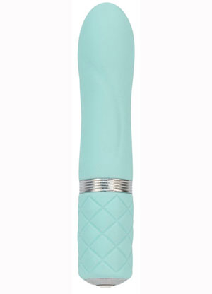 Pillow Talk Flirty by BMS Factory is presented in a feminine, crisp, white box. It is non-aggressive and discreet. The toy itself is a dressed up vibrating bullet. Wearing a pastel blue silicone coat tipped with a single Swarovski crystal, the lipstick-sized bullet looks girly enough to keep in a purse. Longer and slightly larger than your standard pocket bullets, it’s rechargeable and operates the same as it’s less-frilly cousins, but with a neat upgrade. The faceted button controls the vibration options, but rather than clicking to cycle through your choices, you press and hold until it reaches your desired setting. This is a lovely beginners toy or an on-the-road piece for a feminine user.