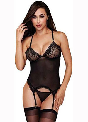 Release your inner Goddess with this sheer bodice with lace bralette cups, matching panties and garter set. Pair with some of our fishnet thigh highs if you are feeling extra frisky.Copyright © 2026 Adnet Media. All Rights Reserved. XBIZ is a trademark of Adnet Media.
