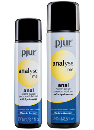 Comforting double-effect water-based anal lubricant.ANALYSE Water with key ingredient comforting hyaluronan is a double-effect water-based anal lubricant created for women who prefer maximum moisture for anal penetration. This moisture enhancing personal lubricant is hypoallergenic, latex condom safe, and ideal for daily use.