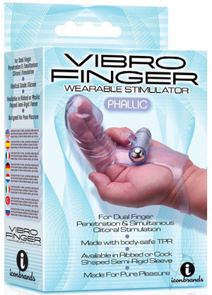 The Vibro Finger Wearable Stimulator by Icon Brands comes in a typical sex toy box, perfectly suited for the pegboards of your local toy store.