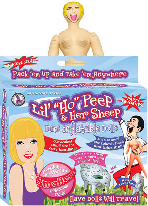 What bachelor party is complete without having a blow up doll? Double the fun by packaging it with a petite blow up sheep to match, it’s Lil’ Ho Peep and Her Sheep to liven up any party! These little cuties are guaranteed to bring the laughter and hysterics when the guys get together for one last go ‘round. Who knows? Since the sassy sheep takes it deep and her matching mistress boasts two willing orifices, after the party’s over, the lucky bachelor may just want go for a roll in the hay with his new best friends.