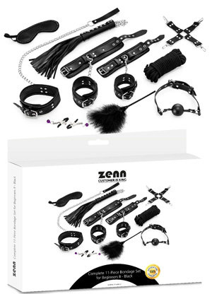 This 11-piece complete bondage set made from artificial leather consists of various BDSM toys for him and her; the cuffs have a luxury nice padding, and all toys which can be used to restrain your partner are size adjustable and have rings which can be used to attach weights, hooks and ropes. The ball gag has ventilation holes and is also adjustable. This great set is especially designed to introduce partners to the wonderful world of bondage play!
