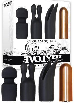 Don’t let the small and discreet size of the Glam Squad kit fool you. This thumb-sized bullet vibe packs a punch and the three silicone tips offer a variety of clitoral stimulation to satisfy the most picky clit stim aficionado. The tips include a solid “wand” type head: bulbous and strong, a dual-bulbed “rabbit ear” tip and a fluttering tulip tip, all of which easily slide onto the seven speed, copper toned bullet. Easily rechargeable and waterproof, this is a perfect first-time vibe without having the expense of buying three different vibrators for a multi-stimulating clit good time!