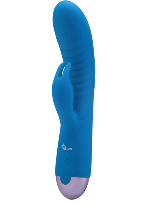 Dual stimulation G-Spot rabbit vibe with "come hither" motion that moves and flows in smooth waves. Featuring soft, flexible rabbit ears & pleasure ridges for heightened sensations. Easy to use push-button control, allowing for independent command of the shaft and the external clit stimulator. Just hold the button for 2 seconds.