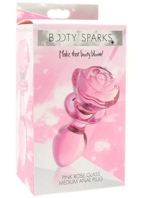 Booty Sparks Pink Rose Glass Anal Plug Medium