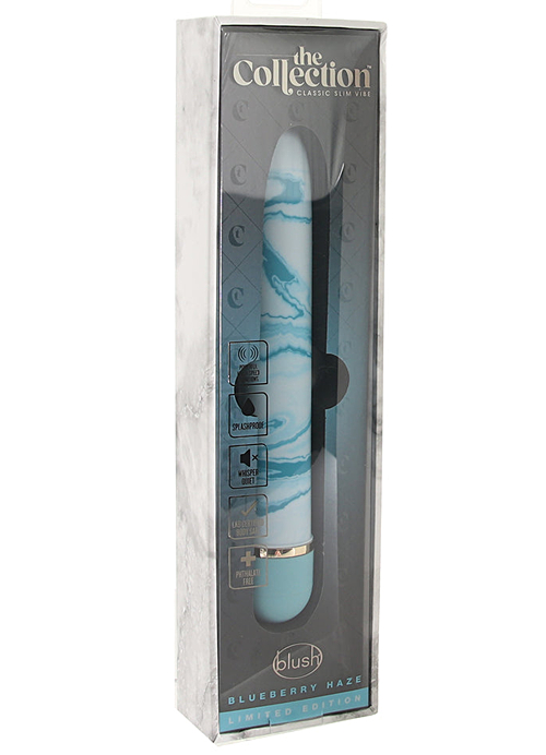 So, we don't like to mess with the classics. If it ain't broke don't fix it, if it makes people happy, and especially if it gives them orgasms, then we're happy, too. BUT! There are exceptions. The Collection's Blueberry Haze Slim vibe from Blush is one of them.We love it when pleasure conscious designers highlight and stylize a beloved vibrator design, and that's exactly what Blush has done with this gorgeous pleasure-giver. Aside from a super-sleek tapered shape, a simple design that's perfect for all levels of toy experience and exquisitely powerful (impressively quiet) multi-speed vibration, Blueberry Haze features swirly blue highlights and a ridiculously smooth surface.