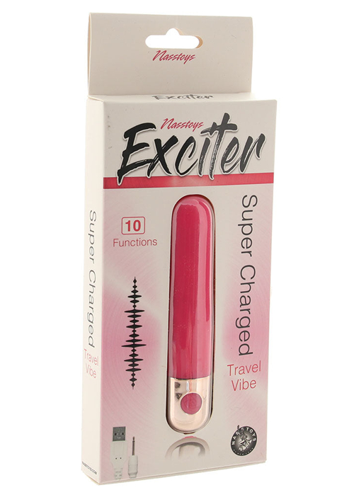 So, we absolutely adore the fact that the Exciter Super Charged Rechargeable Travel Bullet from Nasstoys is is fully rechargeable, conveniently waterproof AND seriously intense. What we (and you will) love even more, though, is that you'll be able to sneak this tiny powerhouse of vibe into just about any sexy situation or location.As you (or they) direct the Travel Bullets lightweight little shape over and around sweet spots, ten modes of steady, pulsating and escalating vibration will be rumbling, pulsing and throbbing along the curvy little shape and straight to you or your playmate. The firm, rounded tip effortlessly pinpoints clitorises, nipples, heads of penises and far beyond, plus, the Bullets sleek shape won't get in that way of other pleasurable things you may be getting up to.