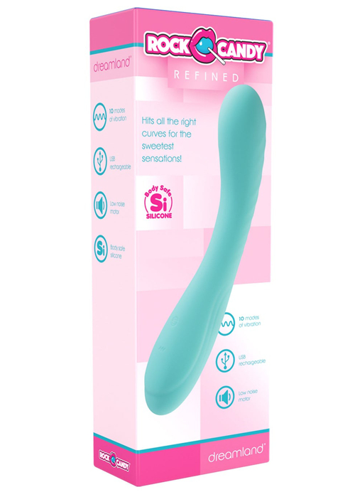 Looking for a sugar rush? Let Rock Candy Toys introduce you to The Dreamland flexible rechargeable sex toy to make your g-spot O that much more indulgent. With a soft, flexible body safe silicone design in a sweet turquoise color, this vibe is as powerful as it is pleasing to look at. Dreamland’s curved shaft ends in a smooth rounded tip and is smooth on one side and features delicate ridging on the other. There’s truly something for everyone with the Dreamland, including easy to use buttons and 10 delicious vibration settings. Splash proof for each shower or bath play, this vibe is perfect for playing solo or with a partner for tantalizing foreplay.Copyright © 2026 Adnet Media. All Rights Reserved. XBIZ is a trademark of Adnet Media.