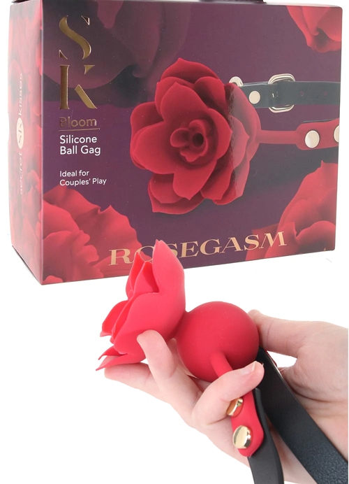 When you and your partner(s) are playing along your merry, bondage-fantasy ways and a (consensual, of course) participant is in a not-so obedient mood, there are any number of solutions, it's true. That said, if you're looking for something that's not only super effective, but also drop-dead gorgeous, you've come to the right gag! Not only does this rosy piece of play gear look absolutely fantastic, it'll also keep you or a partner from spitting, biting, talking back and generally orally disobeying. Buckle up the black leather strap, positioning the silicone ball gag portion of the Bloom in their mouth. Once it's in place, said mouth will be temporarily plugged by a big red rose. There's a single breathable perforation through the rose's center, but it's better suited to players with some gag experience. When using any gag, please make sure to check in often to make sure a playmate can breathe and swallow comfortably. In hypoallergenic silicone, the Bloom Rose Ball Gag is odor free, taste free, and easy to clean. Before and after, wash it well with warm soapy water. * The Bloom gag is about 3.1"/ 7.9cm in total length, 1.5"/3.8cm in diameter, and 5.25"/13.3cm in circumference. Strap adjusts to fit up to about 8"/ 20.32 of head/neck diameter.Copyright © 2026 Adnet Media. All Rights Reserved. XBIZ is a trademark of Adnet Media.