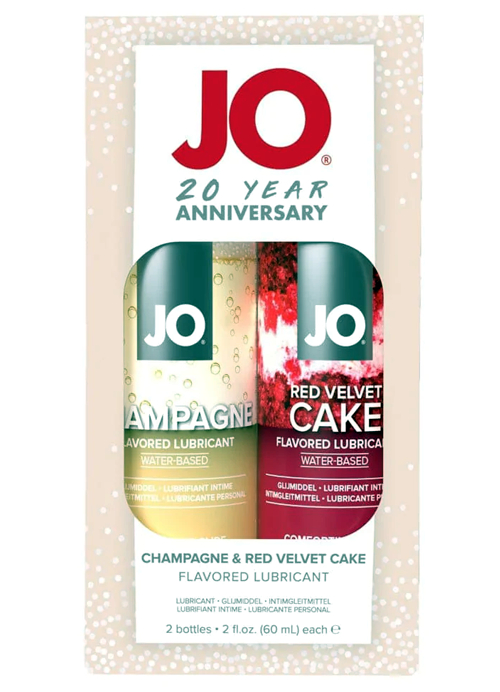 JO 20 Year Anniversary Celebration Kit is the perfect way to get your party started. This celebratory gift set includes one 2 ounces bottle each of their all new Red Velvet Cake and Champagne flavored lubricants. Like all JO water based flavors, these new formulas feel as good as they taste!Copyright © 2026 Adnet Media. All Rights Reserved. XBIZ is a trademark of Adnet Media.