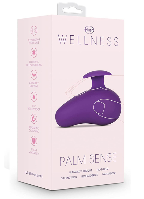 The Wellness Palm Sense Vibe by Blush Novelties turns your hand into a strong, 10-function. The finger fin slips easily between your fingers for a firm grasp and accessibility during pleasure time.Press the smooth, cushy silicone vibe body against your most sensitive erogenous zones for powerful massaging pleasure. The Palm Sense is easy to hold and perfect for solo or partner play!