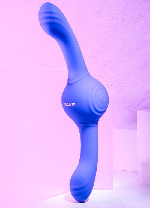 Take tribadism to a whole new level with this double-ended thrill device that never knows when to stop. A sturdy, gyrating ball in the center spins wildly to shake the two silicone dildos into a frenzy that can only translate to the feeling you'll experience when you put those dildos where the sun don't shine. It's kind of like anticipating a go-round on your favorite thrill ride; insert them into an accepting orifice, slide a hand in the center to press the button — then hold on for dear life while every spot between A and Z gets a taste of the action. Why put up with another boring, buzzy orgasm when you can experience one that feels, and looks, out of this world? The crazy-great Gyro Vibe is here to bring you there!