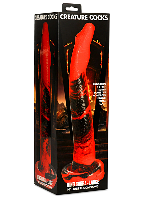 Are you ready to be ravaged? See how good of a serpent charmer you are with this 14 inch Cobra! Designed to uncoil and slither deep inside your rear entry, it is textured with tantalizing details that add intense sensation to your backdoor exploration! The tip of the hose is shaped like a cobra head. You'll enjoy that wide flare of its wide neck as it pops inside. The tapered, round nose makes insertion easy. It has a vibrant red and black body with textured scales that go all the way to the coiled base! Firm and flexible, it is made out of body-safe, premium silicone and is phthalate-free. Use only with water-based lubricants for best results! The base has a strong suction-cup on it so you can have those hands free to guide the snake into your cavern. The wide base is also perfect for combining with a strap-on harness! Enjoy various ways to play with this sinful snake! Enjoy exploring your playful and wild side! Try out some kink cosplay or fantasy roleplay! After use, wash it with warm water and mild soap, then spray it with a toy cleaner and let it air dry.The sinuous snake has long been a symbol is sex and power. The undulating movements from this phallic creature as it slithers, winds and uncurls to great lengths are enticing and attractive. You've found yourself in a snake charmer's den. You couldn't help but be curious about their trade. As they play the flute, the snakes rise and dance. It hypnotizes you just like the music hypnotizes the serpent. You dreamed of how it would curl around you, wrap you up and slither into every one of your holes. Just imagine! The strong body moving inside of you! You shake your head, the sweat dripping from you in the hot den. Where has that charmer gone? He left quite a while ago and you've been waiting here, patiently… Just then you hear a movement behind you, a sound against the floor, then a familiar hiss! As quickly as you turn around you freeze in place! The largest serpent you've ever seen comes closer. It can't be possible but it seems to have a grin on its face. Then other hisses come from other corners of the room and you realize this snake charmer den is really just a magical snake pit, and you've encountered the king cobra! The fiery red scales shine in the dim light and as it moves you're hypnotized again. You let it take you, and as the snake goes deep inside, you surrender to its will.