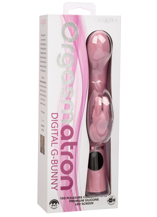 Unlock a world of unparalleled pleasure with the Orgasmatron™ Digital G-Bunny, the ultimate dual massager designed to elevate your intimate experiences. With its expertly contoured "G" shape, this massager targets your most sensitive areas with precision, ensuring enhanced pleasure and satisfaction with every use. Whether you’re indulging alone or with a partner, the G-Bunny promises to be your new favorite companion.The massager offers an astounding 100 pleasure combinations, featuring 10 independent functions of vibration, pulsation, and escalation in both the shaft and the stimulator. This versatility allows you to customize your sensations, making each session unique and tailored to your desires. The illuminated LED screen displays the current function and battery charge, keeping you informed and in control at all times.