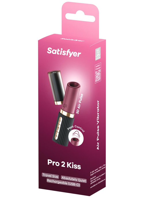 Pucker up for the steamiest make-out session ever! The Satisfyer Pro 2 Kiss uses waves of air pressure to work your clit and other bits. According to Cosmo, the air-powered sensations mimic the feel of oral for mind-blowing pleasure! Adjust its intensity by shifting the inner membrane 3 different ways for a playful peck to a steamy French kiss. Then pick from 10 different speeds for 30 stimulation combinations! Waterproof. Discreet lipstick design. Measures 4.4 by 1 inches total. Made from silicone & ABS plastic. Rechargeable.Copyright © 2026 Adnet Media. All Rights Reserved. XBIZ is a trademark of Adnet Media.