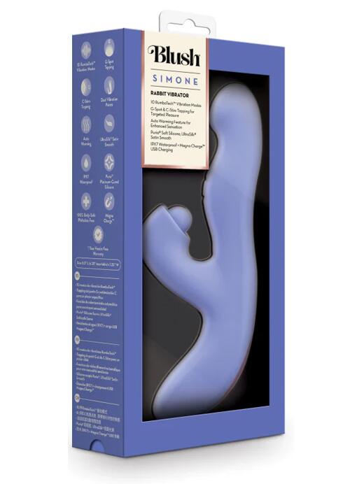 Meet Simone, your passionate companion for intimate exploration. Powered by Blush’s RumboTech™, this beautifully designed, dual-stim rabbit vibe combines 10 vibration modes with G-Spot and C-Stim tapping functions to deliver targeted sensations exactly where you crave them. Designed with a flexible shaft and sculpted external stimulator, Simone invites you to discover new heights of pleasure with effortless precision and passion. The auto-warming feature adds a layer of sensual heat, enhancing intimacy and heightening anticipation with every pulse. Crafted from 100% body-safe Puria® silicone and wrapped in satin-smooth UltraSilk®, Simone feels irresistibly soft and luxurious against your skin. With an IPX7 waterproof design, indulge in Simone’s pleasures during a relaxing bath or shower. Magna Charge™ USB charging ensures it’s always ready when you are. Bold yet intuitive, Simone is perfect for solo or partnered play, making every encounter unforgettable. Set your pace and get ready to lose control.Copyright © 2026 Adnet Media. All Rights Reserved. XBIZ is a trademark of Adnet Media.