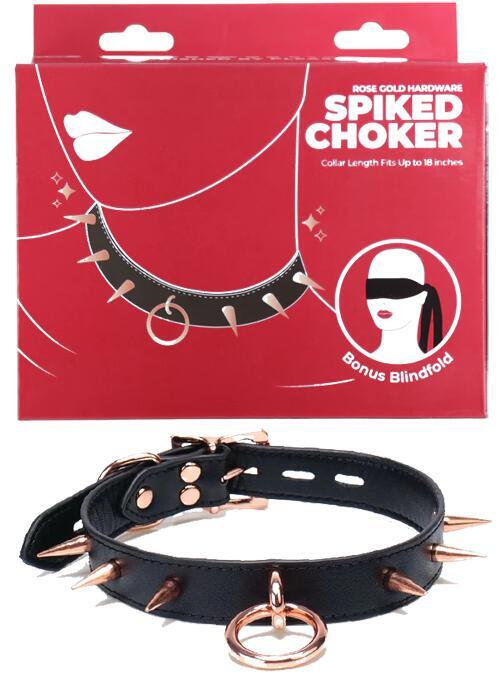 Dip your toe into the world of bondage play with the Punishment Spiked Choker.This daring black collar features striking rose gold spikes and an O-ring that lets you mix and match with your favourite accessories like nipple clamps, leashes, and more. Whether you’re dressing up for a steamy night out or a sultry night in, this collar is the perfect addition to your wardrobe and toy collection.